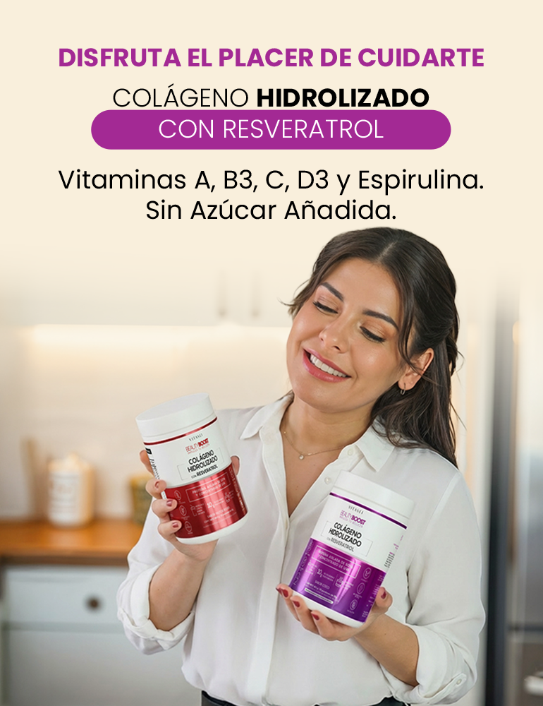 "Este colágeno es clave en mi rutina. Tiene resveratrol para que mi piel luzca firme, luminosa... ¡Me encanta, nutre desde adentro!