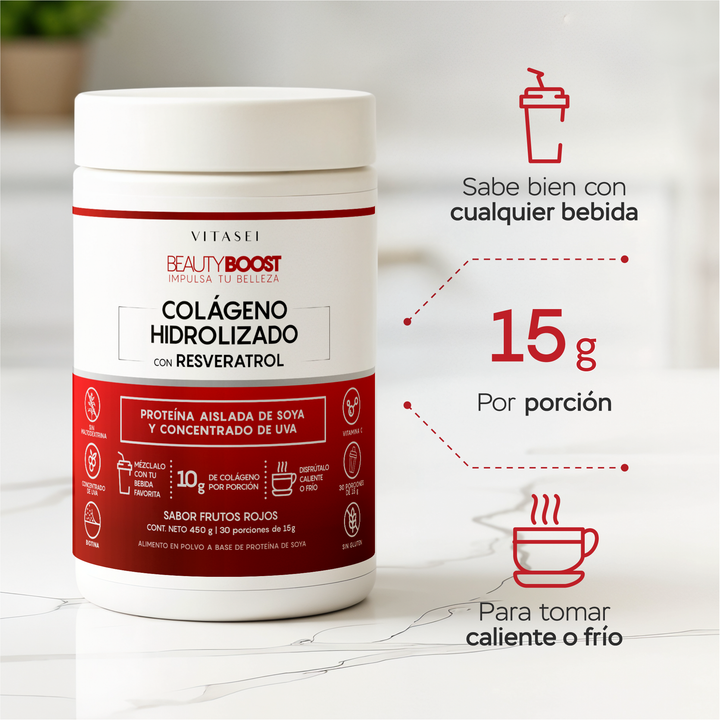 Disfruta nuestro colágeno a base de soya con antioxidantes naturales.