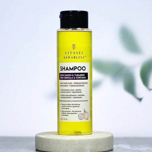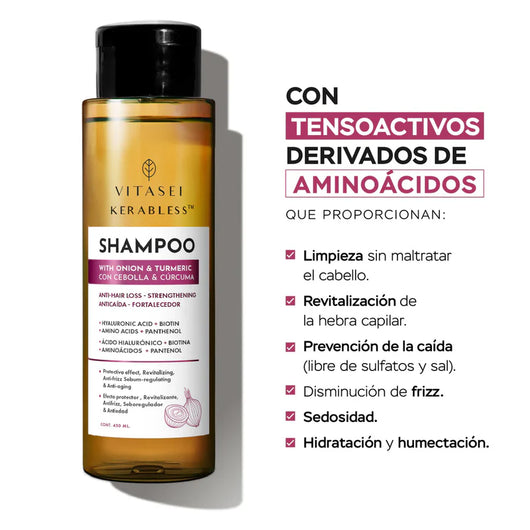 Transforma tu rutina capilar con una limpieza profunda y delicada. Nuestra fórmula con cebolla, cúrcuma, aloe vera, biotina, keratina, ácido hialurónico y aminoácidos nutre y fortalece tu cabello desde la raíz, aportándole vitalidad y suavidad.