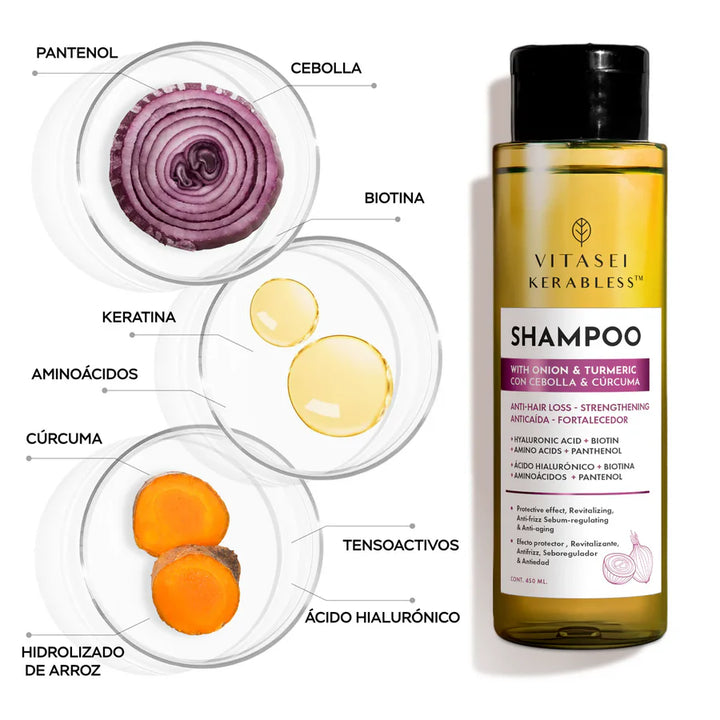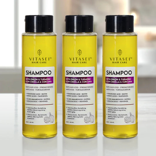 Pack x3 Shampoo (Paga 2 y el 3ro es GRATIS) de Cebolla con Cúrcuma, Queratina y Ácido Hialurónico