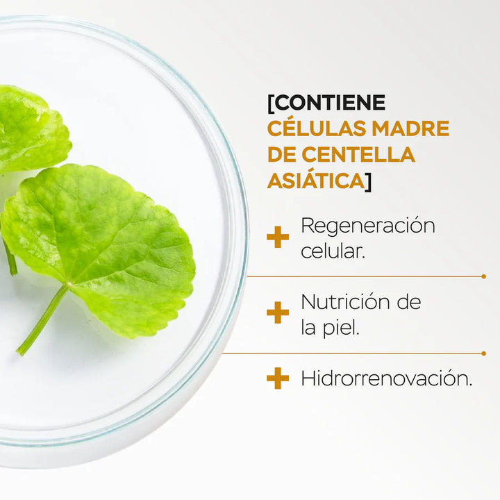La Centella Asiática es una planta milenaria considerada como un potente antioxidante natural. Sus células madre ayudan a mejorar la elasticidad, firmeza e hidratación de la piel.